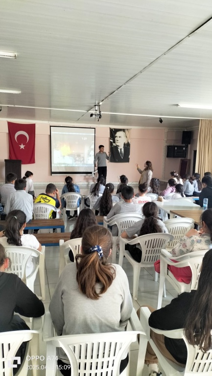 Okulumuzda öğrencilere yönelik Bakanlığımızın 14/09/2017 tarih ve 2017/27 Sayılı Yönetim Sistemleri Belgelendirme Genelgesi doğrultusunda, okulumuzda kurulan TS EN ISO45001:2018 İSG Yönetim Sistemi ve TS EN ISO9001:2015 Kalite Yönetim Sistemi Standardı Yenipazar İlçe Milli Eğitim Müdürlüğü İş Güvenliği Uzmanı Nihal AYDIN, Okul Müdürü Ali Rıza TEKSAN ve Okul Yönetim Temsilcisi Müdür Yardımcısı Hilal SAĞLAM ÖZCAN tarafından 15.04.2025 tarihinde saat 13.00' da çok amaçlı salonda 'İş Sağlığı ve Güvenliği Farkındalık Eğitimi', Güvenlik Kültürü Bilinci Geliştirme', ' Afet Farkındalık Eğitimleri' konularında bilgilendirme semineri gerçekleştirilmiştir.